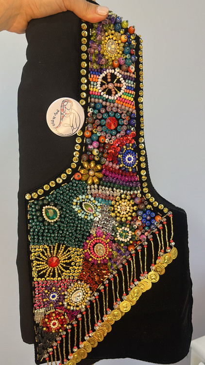 یک شاهکار بیتکرار برای درخششی افسانهای. این مدل، پرکارترین و سنگینترین اثر در کالکشن ماست که تمام سطح آن با ترکیبی خیرهکننده از سنگهای درشت، کریستالهای رنگی، منجوقها، ملیلهها و جواهردوزیهای متنوع پوشیده شده است. آویزهای سکهای (لیرهای) در لبه پایینی، جلوهای اصیل، باشکوه و حرکتی زیبا به آن بخشیده و یادآور شکوه سلطنتی است.
